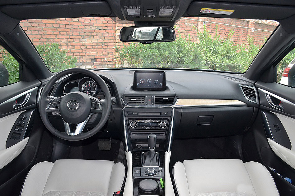 馬自達CX-4和CX-5走的是截然不同路子,X型前臉主體是六邊形中網格柵,加上犀利頭燈與霧燈,寬大扁平形象并不像一臺標準SUV。側面形象非常低矮,配合短小緊湊尾部,完全的轎跑風格。該車內飾借鑒了昂克賽拉的經驗,豎直的中控液晶屏與質感出色銀色或者木紋裝飾板營造了年輕運動的車內形象。中置轉速表式的儀表加上高配配備的換擋撥片,體現出運動車的路線。