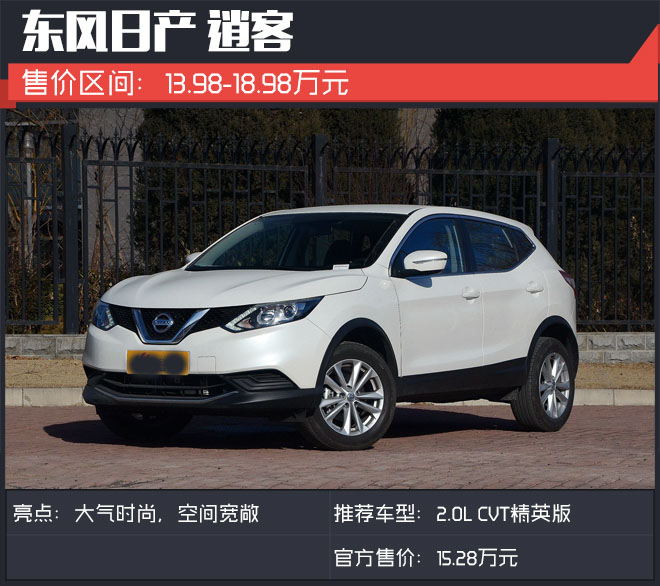 新款逍客上市后真正是大變樣,以往那種傳統方方正正SUV形象被徹底刷新,大氣飽滿加上空間寬敞以及動力充沛節油,一般人想要的都有了。15萬元區間,逍客2.0L CVT精英版配置也不錯,除了前后排多個氣囊組、VDC車身穩定系統,可視倒車也是非常實用的用車功能。