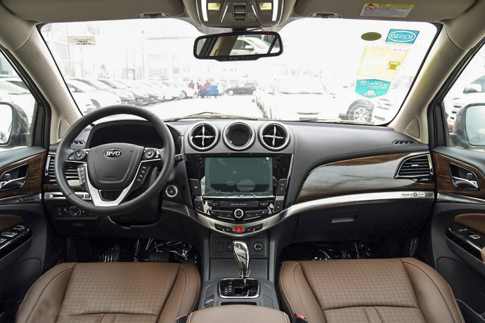 比亞迪S7的內飾充滿了濃濃的科技感,液晶顯示的儀表和中控屏幕,尤其強化了這種感覺。中控臺上方的三個圓形以及巨大的屏幕非常引人注目,而一條銀色飾條對車廂起到了延伸作用,空間的開揚感非常充足。按鍵眾多的方向盤比較繁瑣,需要一定時間的適應,但是手感還是不錯的。此外充足的儲物空間也為S7車主帶來了不少便利。