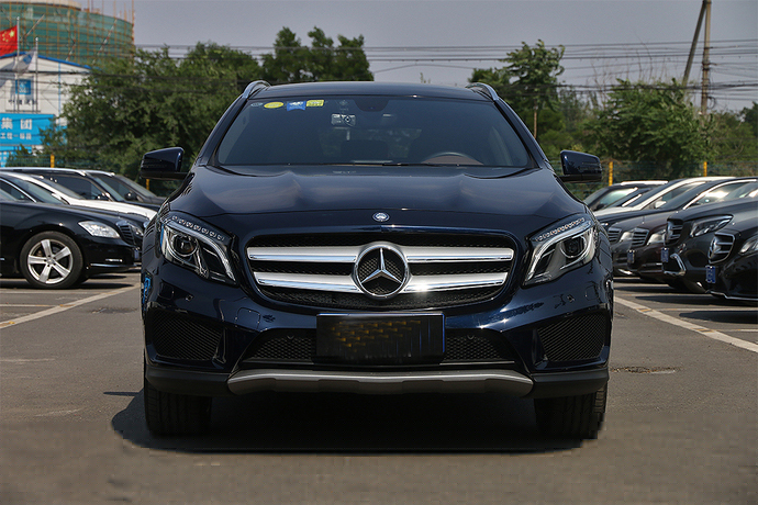 外觀上看,三款車都有鮮明的家族化特點。奔馳GLA并沒有采用傳統的SUV風格,而是采用了和奔馳A級轎車一樣白車身,因此前臉也和奔馳A級轎車區別較小。正面看上去,奔馳GLA是三臺車中車頭看起來最扁寬的。