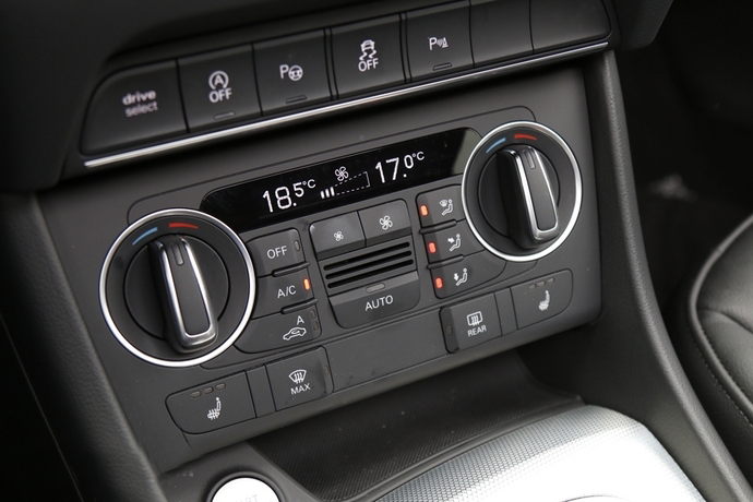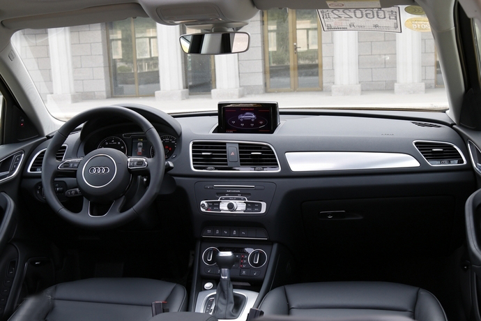內飾氛圍方面,奧迪Q3就是三款車中最樸素的了,頂配奧迪Q3無論是翻折的5.5寸屏幕,來源自奧迪A3的空調面板,還是全車一色的黑色搪塑內飾都透出明顯的廉價感。