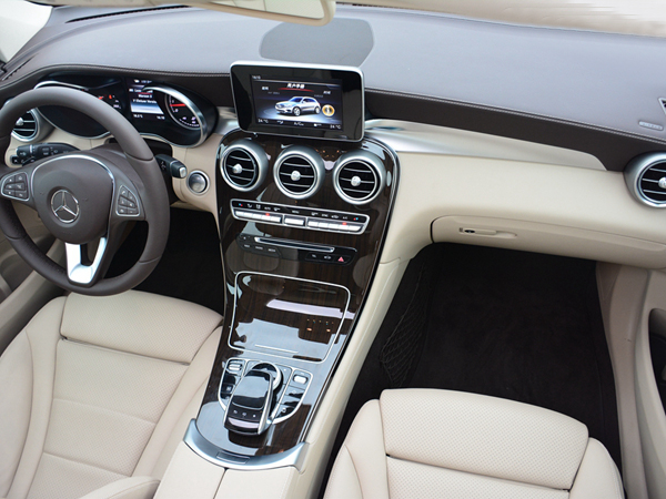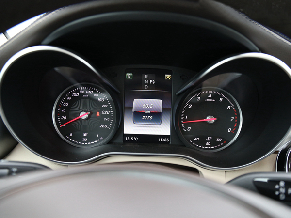 內飾中控臺布局,懸浮式設計都與奔馳C級保持了高度統一,新的三幅式方向盤握感更符合人體工學設計,真皮包裹用料扎實。儀表盤沒有采用液晶設計,樣式也與C級相同。