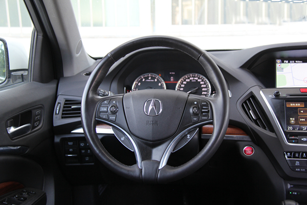 三幅式方向盤手感非常不錯,而且上面的配置功能也極其豐富。值得稱贊的是,MDX的方向盤加熱速度很快,在寒冷的冬天是一項很好的加分點。另外全新MDX還配備了自適應巡航功能,在第二代MDX上這些東西都不曾出現。雙圓形設計的儀表盤很低調,中間加有小塊屏幕,上面可顯示的信息也十分豐富。