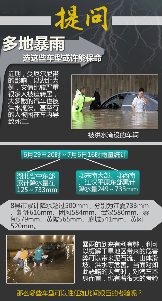 【SUV中國網】近日,多地發生暴雨,因此導致很多地區發生嚴重泥石流、洪水、山體滑坡等災情。面對這種極端的天氣,對汽車本身而言也是很大的挑戰,今天為大家推薦四款車型,有了它們或許可以保住性命。