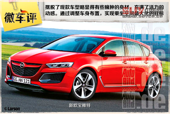 歐寶雅特雖然離我們有些距離,但是和歐寶雅特同根同源的別克英朗卻是我們生活中曝光率較高的車型,厚重飽滿的車身讓歐寶雅特擁有了一副比其他兩廂車要壯碩的身材。日前有國外媒體曝光了全新一代雅特的效果圖。