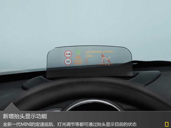 新一代MINI車型中首次配備MINI平視顯示系統(tǒng),該系統(tǒng)可確保駕駛相關信息始終顯示在駕駛者視野內。MINI對平視顯示系統(tǒng)的設計理念進行了重新詮釋,將信息顯示在前車窗和方向盤之間,位于儀表板頂部的一個小型折疊顯示屏上,而不是投射在風擋玻璃上。