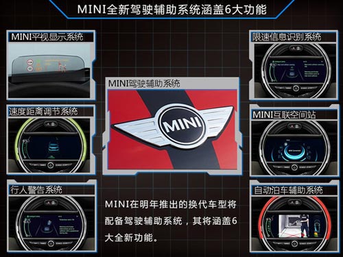 據了解,新一代MINI車型中將首次配備的智能駕駛輔助系統(tǒng),由三個不同才做系統(tǒng)所組成,分別是MINI平視顯示系統(tǒng)、帶制動功能的碰撞和行人警告系統(tǒng)、駕駛者輔助系統(tǒng)。此外,新一代MINI還配備限速信息識別系統(tǒng)、速度和距離調節(jié)系統(tǒng)以及自動泊車輔助系統(tǒng),這些功能的加入將使駕駛者操作起來更加便捷。