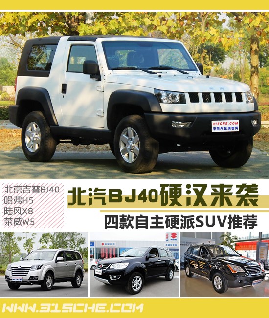 從2008年發布概念車至今約6年的時間里,舉凡有些名氣的車展上都會有北汽BJ40(現改名為北京吉普BJ40)的消息,但是卻從未如約而至,因而被封了個親切的稱號“跳票王”。現在,提到12月28日將要上市的北京吉普BJ40,大部分人都得感慨一下:終于要來了啊!同時也許還有這樣的疑問:這條硬派SUV之路在國內能否行得通?我們都知道,自主SUV中標榜硬派、越野的車型的銷量都不是很好,而北京吉普BJ40在籌備了6年之久的時間才重磅推出,預計20萬的售價也偏高了些,這不得不讓我們憂心這款車型未來的表現。今天,我們先為大家介紹幾款國內的自主硬派SUV車型,各位也可以預猜一下BJ40的未來將會如何。