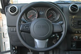 通常硬派SUV的內飾都比較樸實,不太注重設計。BJ40的中控臺也設計的很簡單,顯得有些粗糙。其中控區的各功能區分清晰,操作便捷。中控臺和方向盤都采用的是塑料材質,手感有限,有一絲廉價的感覺。對于一款純粹的越野SUV來說,設計不需要太過考究,粗糙有時候反而更能展現越野的氣質。