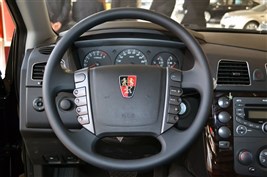 榮威W5的內飾設計相對較為用心,減少了我們在BJ40身上感受到的粗獷,設計感和人性化明顯了很多。車內采用了不對稱設計方式,將中控面板設計的更偏向駕駛員一側,四輻式方向盤集成了很多多功能按鍵,行車操作更方便。