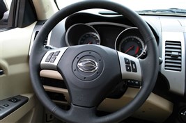 陸風X8的內裝設計非常簡潔,沒有太多突起的設計,平整性很好。但是在人性化設計方面就沒有榮威W5來的實在,方向盤加入了發光材質的鑲邊設計起到了一定的點綴作用,內飾的精致度和美觀度上要比北京吉普BJ40提升很多。