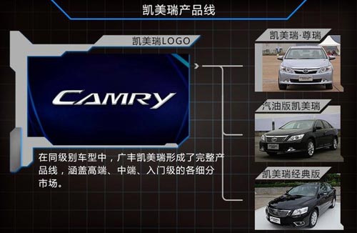 在去年初完成換代之后,凱美瑞至今形成了高端、中端、入門級(jí)車型的三大產(chǎn)品線,實(shí)現(xiàn)對(duì)各細(xì)分市場(chǎng)的全面覆蓋,在同級(jí)別車型中分布最為完善,銷量逐漸提升,市場(chǎng)表現(xiàn)漸入佳境。其中經(jīng)典版凱美瑞以2.0L為主導(dǎo),進(jìn)攻14-16萬元的入門級(jí)市場(chǎng),這個(gè)市場(chǎng)給凱美瑞帶來不小銷量;2.5L的汽油版車型是主力,涵蓋16-25萬元價(jià)格區(qū)間;25萬-30萬元的高端市場(chǎng),則由混合動(dòng)力版本的凱美瑞·尊瑞來完成,隨著國(guó)內(nèi)混動(dòng)車型的升溫和限購城市的擴(kuò)大,尊瑞正朝月銷千輛的目標(biāo)邁進(jìn),也大幅提升了凱美瑞的品牌形象。
