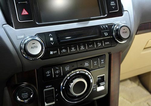 內飾方面,首先你會覺得全新普拉多的內飾做工更好了,而且經過重新設計的中控臺的按鍵布局也與老款車型有不少的改變,不論是旋鈕的位置還是按鍵的力度都經過了比較細心的調整,以往粗礦而不修邊幅的印象這次終于有所改觀。