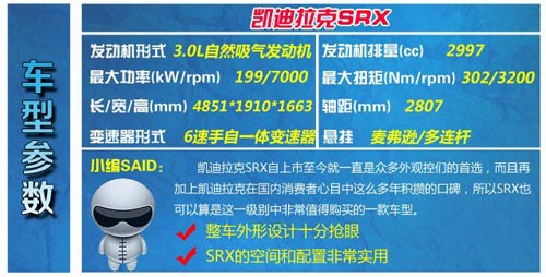 配置方面,CUE系統的引入,使凱迪拉克新款SRX中控臺按鍵縮減至7個。同時,新款凱迪拉克SRX還首次引入“ESS強化安全策略”,包含前方碰撞預警、車道偏移預警、超聲波前后駐車輔助系統,與座椅震動預警相配合,可通過視覺、聽覺、觸覺三種方式,提供360度全方位安全預警防護。