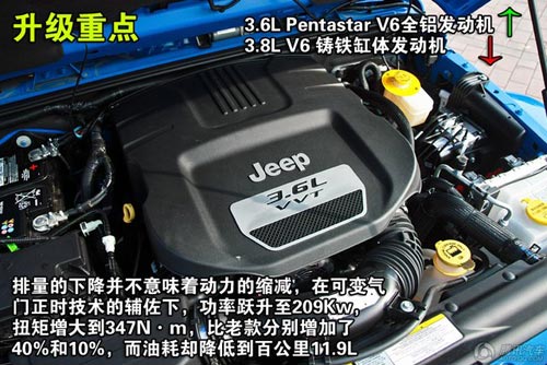 動力方面,2013款牧馬人使用了3.6L發動機,并且這臺發動機還入選過“沃德十佳發動機”榜單,變速箱也是5擋自動,最主要的就是這套動力系統不再只是油老虎的代名詞了,百公里基本可以控制在15L以內。