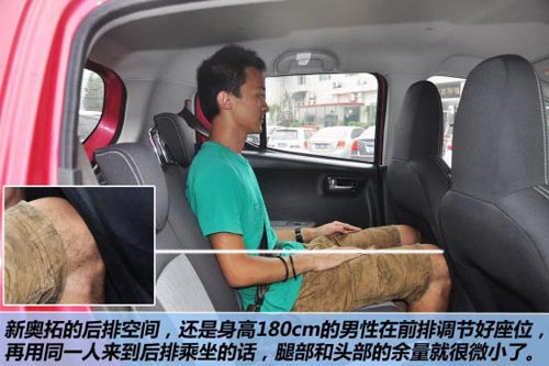 奧拓整車尺寸為3570*1600*1470mm,軸距2360mm。雖然不是很寬敞,但坐下4個成年人不是問題。正常行李廂只有129升,如果放倒后排座椅后,還能拓展到367升,這樣也能拖運一些大件的行李。