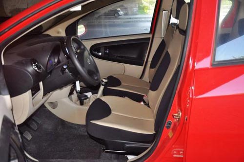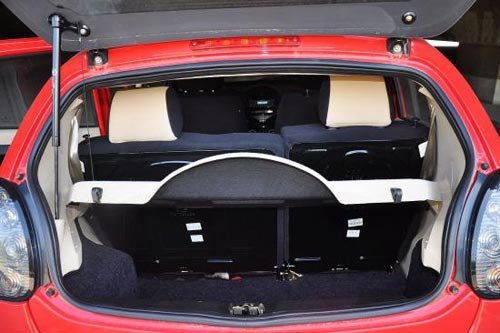 熊貓的軸距為2340mm,與比亞迪F0一樣,都屬于夠用的類型。具體來看,熊貓的前排頭部空間比較出色,而后排的頭部和腿部空間則比較有限,短途乘坐問題不大,長途有些不夠舒適。熊貓并沒有采用整體后備廂的開啟方式,而是擋風玻璃部分才是行李廂艙蓋,這種設計雖然比較新鮮,但實用性方面受到了較大影響,但可以放倒的后排座椅讓其載物空間比較靈活。