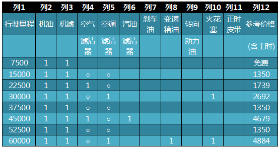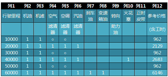 2、三年60000公里保養費: