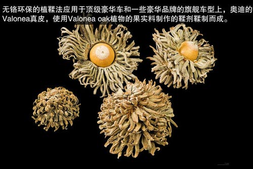 在奧迪的產(chǎn)品序列之中,旗艦車型奧迪A8L引入了Valonea真皮,這種皮革的名稱來自一種叫做Valonea oak的植物的果實。Valonea真皮就是采用這種植物材料制作的鞣劑鞣制而成,因此避免了鉻鞣制過程中,鉻殘留對環(huán)境和皮膚的影響。同時純天然的植物鞣劑給Valonea真皮帶來一種獨有的芳香。