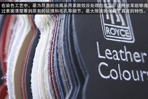 用于車輛內(nèi)飾的皮革還需要經(jīng)過染色處理,在染色劑的選擇上也有著許許多多的選擇。其中最為昂貴的當(dāng)屬采用苯胺效應(yīng)處理的皮革。這種皮革能夠透過表面清楚的看到皮革原有的紋理和毛孔等細節(jié),最大限度的保留了真皮的特性。現(xiàn)在一些金屬絡(luò)合染料、有機染料或是有色樹脂也能夠取代苯胺染料,達到這樣的效果。在使用苯胺涂料的皮革之中,無需額外處理的皮革最為昂貴,手感也最為接近皮革原有的質(zhì)地。