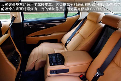 除了一些頂級豪華車以外,大多數(shù)豪華車均采用半苯胺皮革,這類皮革材料表面有輕微瑕疵,顏料均勻的噴涂在表面對瑕疵有一定的修飾作用。同時這類皮革還擁有較好的耐光性能和防滑性能,清潔與保養(yǎng)也較為容易。