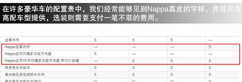 在選購車輛時,銷售顧問往往會將真皮座椅或真皮內(nèi)飾作為推銷的賣點,在產(chǎn)品彩頁上也羅列出一些帶有英文前綴的真皮材質(zhì),作為車內(nèi)豪華性的指標。在看配置表時或許你已經(jīng)趕到困惑,再看看豪華品牌的內(nèi)飾選裝件價格,更會令你驚嘆。那么這些真皮為什么會那么貴,與一般轎車上所用的真皮又有什么區(qū)別,本文將為你一一解答。