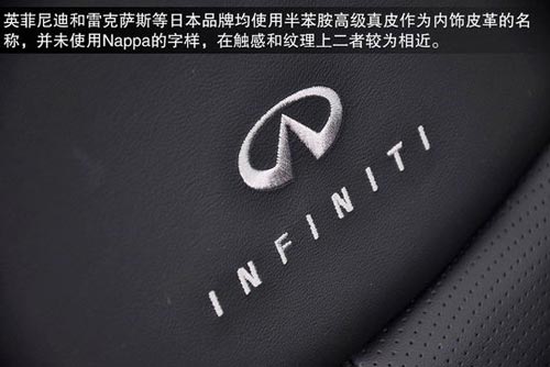 日系企業(yè)則沒有這么多說法,雷克薩斯和英菲尼迪均采用半苯胺高級皮革作為內(nèi)飾材質(zhì)的名稱,直接表明了皮革的處理工藝。