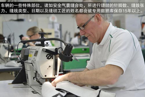 同為頂級豪華品牌的賓利同樣雇傭技藝精湛的皮革制作藝人,縫制車輛的內(nèi)飾與座椅。他們擁有各自獨到的縫制技藝,能夠根據(jù)內(nèi)飾的曲線進行縫合,雙針縫紉以及滾邊都自然的融入其中。每位工匠會在縫制的過程中應(yīng)用不同顏色的縫線,以此區(qū)別不同的操作人員。車輛的一些特殊部位,諸如安全氣囊縫合處,所進行縫紉的針腳數(shù)、縫線張力、縫線類型、日期以及縫紉工匠的姓名都會被專用數(shù)據(jù)庫保存15年以上,以此做到對于品質(zhì)的堅實保證。