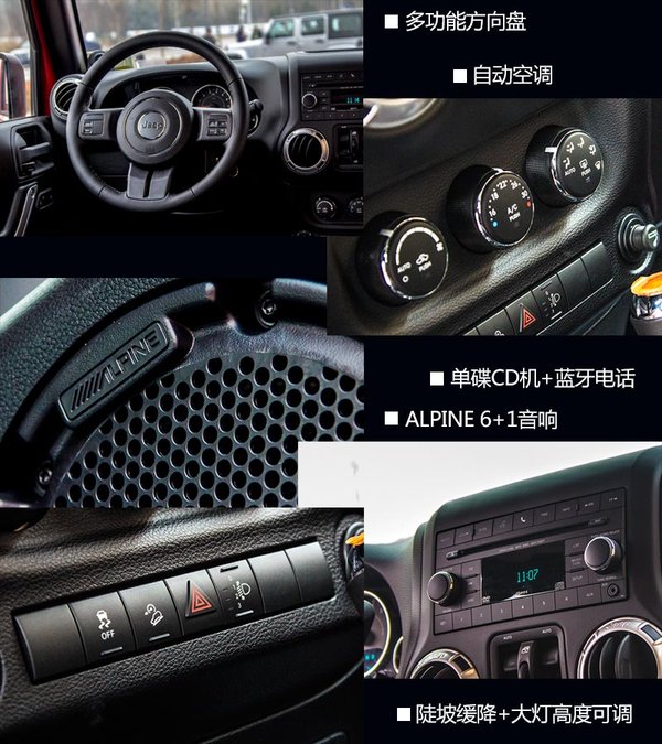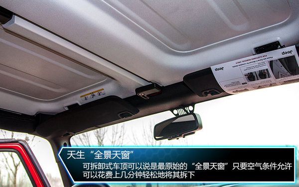 牧馬人天生就是全景天窗車型,只要是車主肯花上些時間,拆下車頂后的通透感一定比任何全景天窗車輛更拉風(fēng),如果生活地方并不是霧霾之都,開天窗過日子的場景更能體現(xiàn)出生活質(zhì)量。