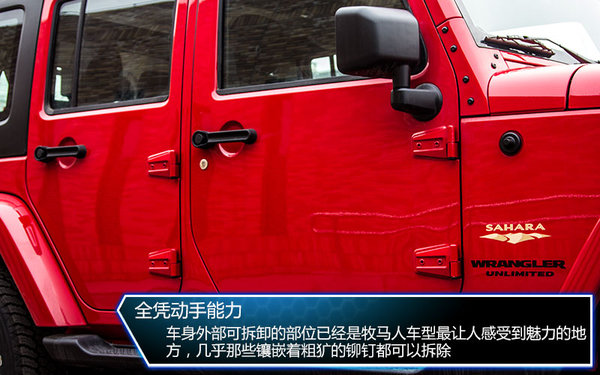 車身上那些裸露的螺釘和鉸鏈都說明牧馬人有著極高的DIY個性,同時這也是向鼻祖威利斯致敬的方式。只要有足夠的時間和工具,Jeep牧馬人完全可以回歸它最原話的模樣。