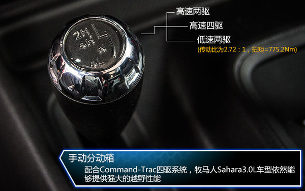 5速自動變速箱是全系的標配,雖然在檔位數(shù)量上占不到優(yōu)勢,但是對于越野而言,穩(wěn)定性和耐用是最大的優(yōu)勢,在配合3.0L引擎,從工信部所獲得的信息來看,平均油耗只有11.6L。牧馬人之所以成為全球性能最強的專業(yè)SUV,核心源于其業(yè)內(nèi)最專業(yè)的分時四驅(qū)系統(tǒng),通過分動箱來切換驅(qū)動方式,在低速四驅(qū)模式下,傳動比為2.72:1,扭矩被放大到775Nm,能夠順利幫助脫困。