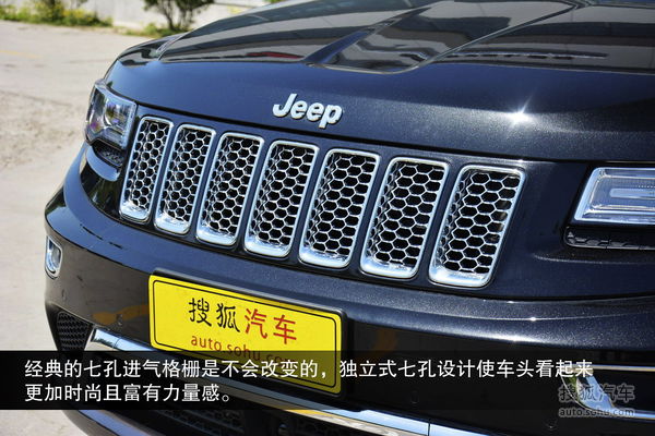 Jeep大切3.0L Summit旗艦尊悅版車型,在外形上與在售的其他排量的車型保持一致,健碩的身形在路上有著相當不錯的回頭率。經典的七孔進氣格柵是不會改變的,獨立式七孔設計使車頭看起來更加時尚且富有力量感。細長的前大燈造型,內部通過光源的布置營造出了科技感十足的眼神。兩側大燈的內部分別雕刻著"吉普車"的印跡和"SINCE 1941"的字樣,LED日間行車燈的加入既符合豪華車的流行趨勢,也確實漂亮了許多。