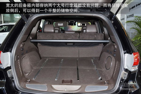 側面腰線依然保持著大切諾基的硬朗風格。"Y"型雙五幅輪轂造型整體感覺簡潔有力,采用了進口錦湖輪胎,尺寸為265/50 R20。