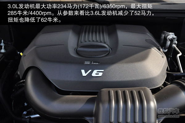 3.0L發動機最大功率234馬力(172千瓦)/6350rpm,最大扭矩285牛米/4400rpm。從參數來看比3.6L發動機減少了52馬力,扭矩也降低了62牛米。變速箱依舊為ZF(采埃孚)提供的8AT。