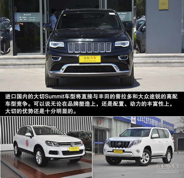 進口國內的大切Summit車型將直接與豐田的普拉多和大眾途銳的高配車型競爭。可以說無論在品牌塑造上,還是配置、動力的豐富性上,大切的優勢還是十分明顯的。