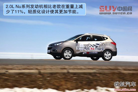 現(xiàn)代ix35搭載新的2.0L Nu系列和2.4L自然吸氣發(fā)動(dòng)機(jī)。ix35的2.0L Nu發(fā)動(dòng)機(jī)擁有121kW/6500rpm的最大功率及199Nm/4800rpm的最大扭矩;在數(shù)據(jù)上并沒(méi)有比老款提升太多,但2.0L Nu系列發(fā)動(dòng)機(jī)相比老款在重量上減少了11%,輕質(zhì)化設(shè)計(jì)使其更加節(jié)能。
