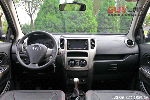 內飾采用雙色配色方案,更加適合家用化,但是與比較不俗的外觀相比,內飾在一些細節做工之處比較粗糙。中控臺沒有采用平鋪設計,而是在音響控制區和空調控制區之間斷開,突出了立體感。儀表盤設計較為獨特,采用了主流的炮筒式風格,時速表被集成在了轉速表中間的液晶屏內。