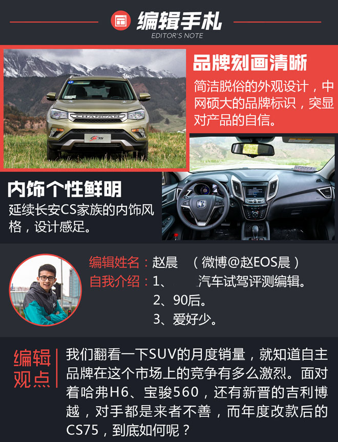 【SUV中國網(wǎng)】在SUV市場上,從來都不缺少競爭對手,無論是合資品牌,還是自主品牌。哈弗H6不斷刷新著銷量榜的最佳戰(zhàn)績,而寶駿560黑馬一般的閃現(xiàn)也再次證明,SUV市場上,永遠(yuǎn)只有你想不到的。當(dāng)人們的選擇從合資轉(zhuǎn)向自主時,這個市場似乎也變得更為生機(jī)勃勃,備受關(guān)注的吉利博越千呼萬喚始出來,好像所有人的目光齊刷刷的投向了它,但是,別忘了它,長安CS75,通過改款、升級,它似乎也帶著一股不服氣的勁兒來了,目的很簡單,試著把那個“網(wǎng)紅”拉下水。