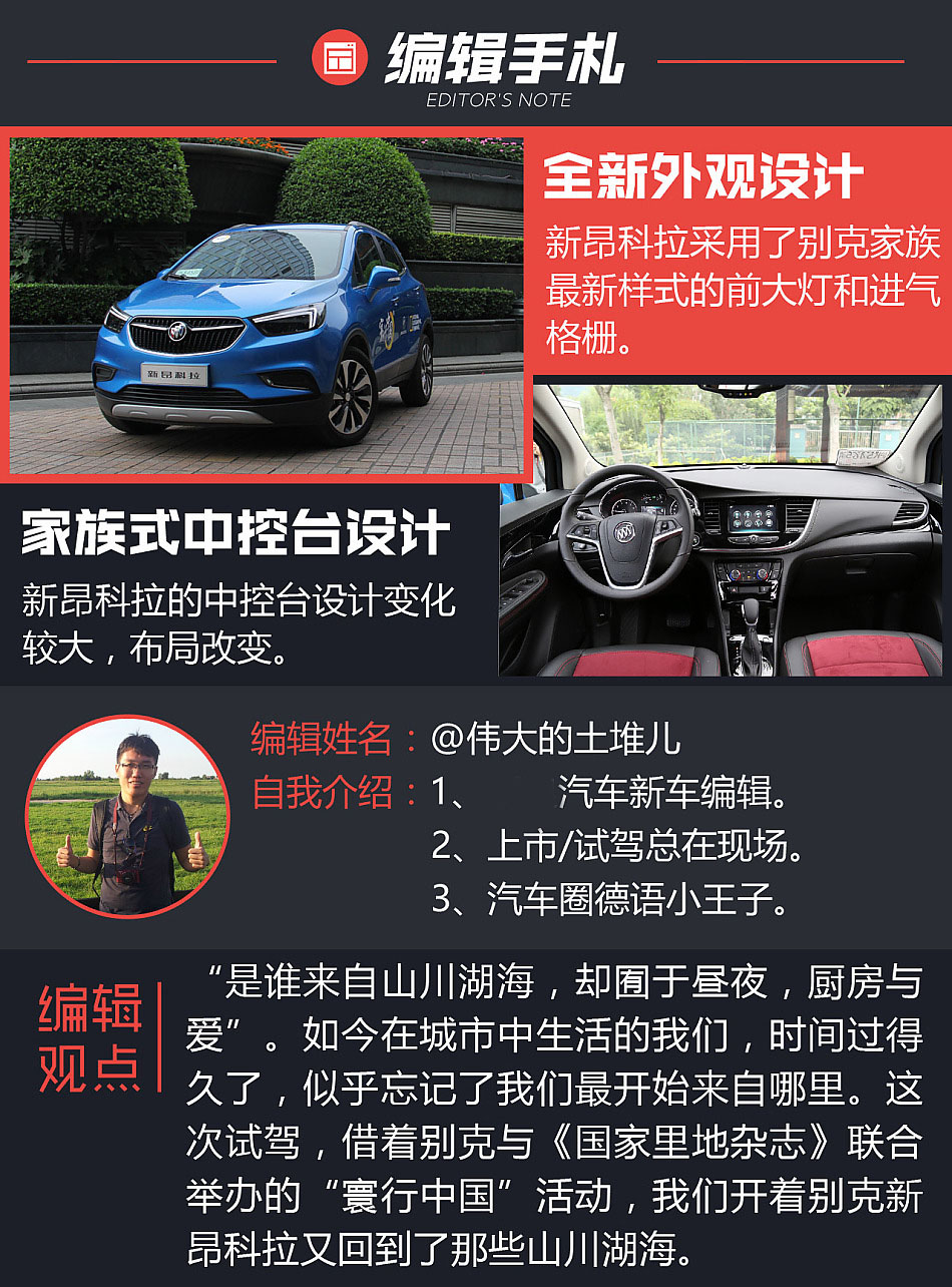 【SUV中國網(wǎng)】“是誰來自山川湖海,卻囿于晝夜,廚房與愛”。如今在城市中生活的我們,時間過得久了,似乎忘記了我們最開始來自哪里。這次試駕,借著別克與《國家里地雜志》聯(lián)合舉辦的“寰行中國”活動,我們開著別克新昂科拉又回到了那些山川湖海。