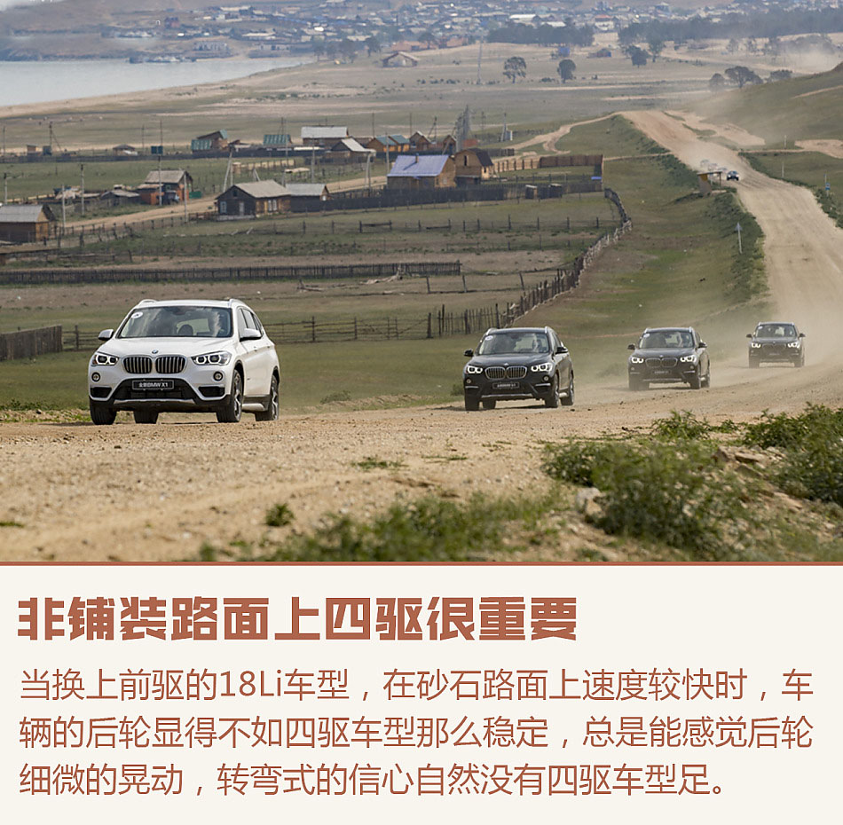 在貝加爾湖波光粼粼的水面旁,我們完成了全新X1的短暫試駕,與慣常的試駕不盡相同,這次寶馬勇敢的將國產車拉到海外,還在這樣一個極限的路況下穿山越嶺,除了為這美麗的意境,更多的像是在挑戰和證明。挑戰世俗的眼光,挑戰人們對SAV車型的觀念,同時也為證明X1的能力遠不止緊湊級城市SUV那么簡單。