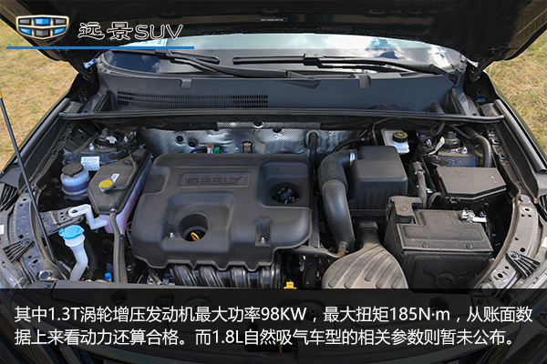 也許還有人對吉利遠景SUV不太熟悉。這里我先簡單介紹下,遠景SUV為吉利GX7的中期改款車型,定位于緊湊級SUV,并將推出2種動力組合、4款車型,其中2種動力組合分別為1.8L+5MT及1.3T+CVT。新車將于8月28日上市,預售價區間為8.09--10.39萬元。