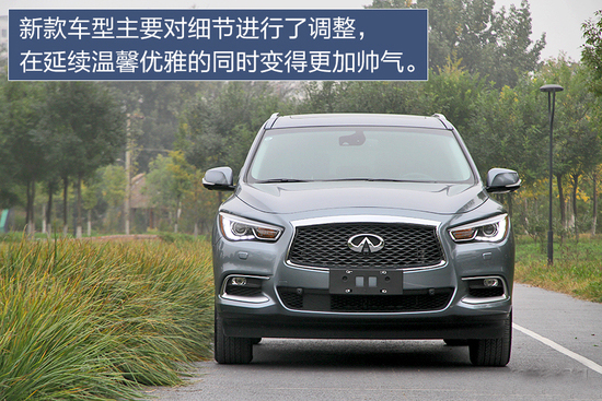 在同級別車型中,英菲尼迪QX60一直都有著更濃郁的居家色彩,優雅柔和的線條和寬大的車身都給人很強的溫馨感。相比老款車型,新款車型在中網、大燈、尾燈等細節進行了小幅調整。