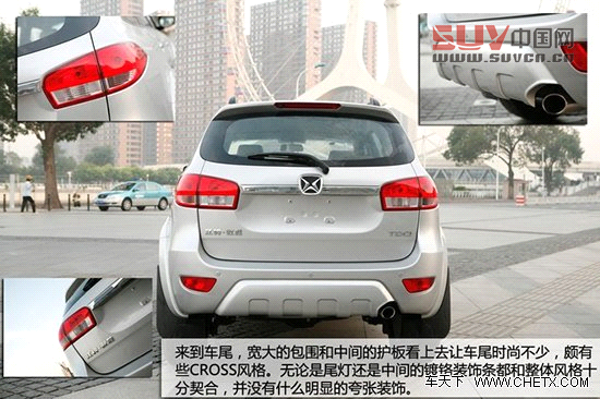 來(lái)到車(chē)尾,寬大的包圍和中間的護(hù)板看上去讓車(chē)尾時(shí)尚不少,頗有些CROSS風(fēng)格。無(wú)論是尾燈還是中間的鍍鉻裝飾條都和整體風(fēng)格十分契合,并沒(méi)有什么明顯的夸張裝飾。除此之外,我們還能看到倒車(chē)?yán)走_(dá)探頭以及后車(chē)窗的雨刷器,有這些,足夠了!