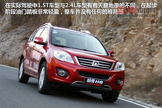 在一個月前本人也試駕了長城哈弗H6 2.4L自動擋,當時2.4L車型給我的第一印象則是前半段表現突出,而后半段表現平平,但此次試駕的1.5T車型與2.4L車型有著天翻地覆的不同,在城市路段實際駕駛中油門踏板非常輕盈,靜止狀態下的油門響應相當靈敏,在起步初期由于排量上的劣勢會顯得有一些動力不足,不過好在一檔較長的齒比可以進行很好的彌補,當轉速超過1500轉后渦輪開始介入,動力也隨之提升,此時會明顯的感覺到一絲微弱的推背感。