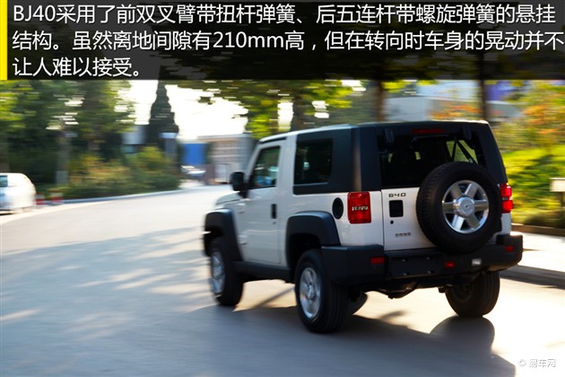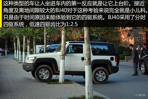 小結:與外觀所呈現出的感受相同,北汽BJ40的駕駛感受還是那種野性的特征。非承載式車身結構讓北汽BJ40的車身強度增高,鋼架能夠提供很強的車身剛性,但同時也摒棄了舒適性。由于所試駕車型非量產車型,所以在入檔及轉向等感受上還不能完全確定,但這種為越野而設定的特性相信是不會改變的。值得一提的是北汽BJ40的低速四驅齒比為1:2.5。也就是說在低速四驅模式下,扭矩可放大2.5倍。用直觀的數據對比來看,Jeep牧馬人Sahara車型的低速四驅齒比為1:2.72,而鈴木吉姆尼的低速四驅齒比為1:2。從中可以讀出BJ40在這點上也達到了不錯的成績。
