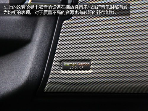 在豪華配置方面我們最容易注意到的是其配備的哈曼卡頓音響,這套音響設(shè)備在播放輕音樂與流行音樂時(shí)都有較為均衡的表現(xiàn)。對于質(zhì)量不高的音源也有較好的補(bǔ)償能力。