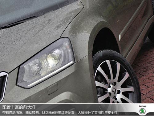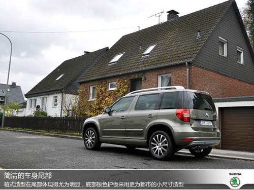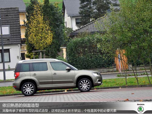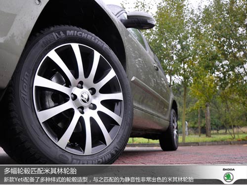 新Yeti在側(cè)面造型方面變化不大,箱式造型依舊保留的十分完整。雖然這樣的設(shè)計略顯不夠主流,但D柱垂直的風格無疑對車內(nèi)空間可以起到促進作用。值得一提的是,新款Yeti為消費者準備了6種不同風格的輪轂造型,此次試駕的車型匹配的為米其林輪胎,該輪胎有低噪音、舒適性出色的特點。