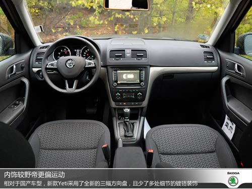 雖然外觀差不多,但內(nèi)飾部分新Yeti較國產(chǎn)野帝還是有很多細節(jié)的區(qū)別。新Yeti采用了三幅運動型真皮方向盤,并且集成了影音控制、行車信息顯示調(diào)整等多項功能按鍵,整體握感與大眾品牌車型區(qū)別不大,略粗的方向盤屬于很快可以激發(fā)駕駛者駕駛欲望的一類。
