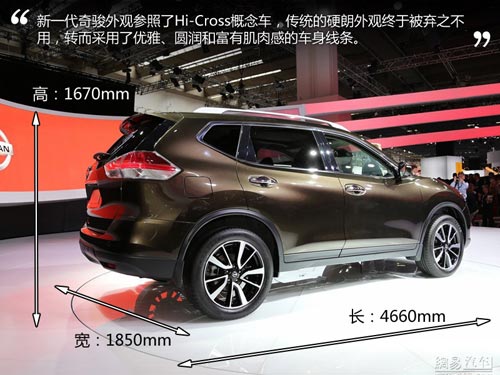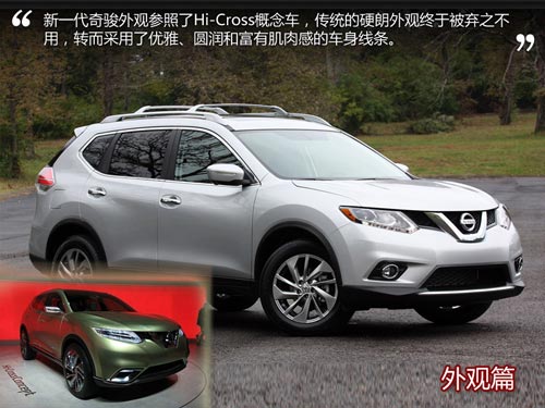 新一代奇駿的外觀設計有了脫胎換骨的變化,整體風格十分年輕、時尚,現(xiàn)代感很強,相比第二代產(chǎn)品可以說有本質(zhì)的差別。飽滿、動感的車身線條完全不同于現(xiàn)款車型那種保守的方盒子造型,更加符合大眾審美,從而向城市SUV的主流風格靠攏。