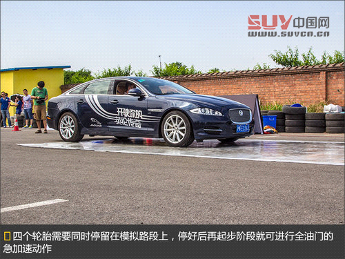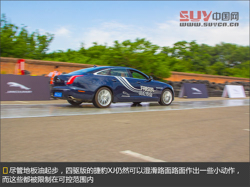由于夏天的原因,要想體驗出冰面上的所帶來的不同的駕駛感受,主辦方只是采用了一種類似于冰雪路面的模擬路段,它的濕滑程度絕對能讓XJ的四驅系統快速的進入工作模式。